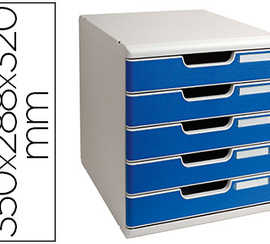 MODULE CLASSEMENT EXACOMPTA 5 TIROIRS A4+ 4 HAUTEURS 350X288X320MM PORTE-ATIQUETTE COLORIS GRIS LUMIERE/BLEU