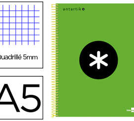 CAHIER SPIRALE ANTARTIK A5 PERFORÉ COUVERTURE POLYPROPYLÈNE 100G 5X5MM VERT