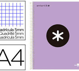 CAHIER SPIRALE LIDERPAPEL ANTA RTIK A4 240P 100G REMBORDA QUADRILLAGE 5MM MICROPERFORA 5 BANDES 4 TROUS COLORIS LILAS