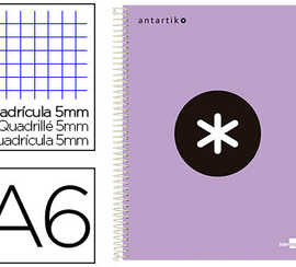 CAHIER SPIRALE LIDERPAPEL ANTA RTIK A6 10,5X14,8CM 200P 100G/M2 QUADRILLAGE 5MM COIL- LOCK COLORIS LILAS LAVANDE