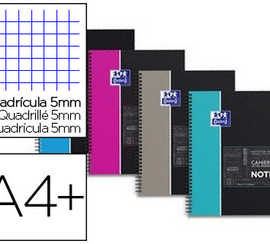 BLOC OXFORD NOTEBOOK RELIURE I NTAGRALE COUVERTURE CARTON EXTRA-RIGIDE A4+ 245X310MM 160 PAGES 90G 5X5MM 4 TROUS