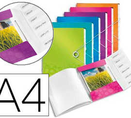 CHEMISE LEITZ WOW POLYPROPYLEN E DOS RIGIDE 30MM A4+ 250X330MM 3 RABATS FERMETURE ALASTIQUE UNIQUE COLORIS ASSORTIS