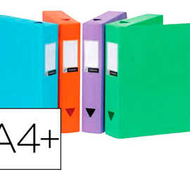 BOÎTE CLASSEMENT VIQUEL POLYPR OPYLENE 8/10E DOS 60MM FERMETURE PATTE BOUTON PRESSION COLORIS ASSORTIS STANDARD