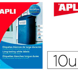 ATIQUETTE ADHASIVE APLI AGIPA JET D'ENCRE POLYESTER BLANC LONGUE DURAE 210X297MM 10 FEUILLES 10 UNITAS