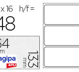 ATIQUETTE ADHASIVE APLI AGIPA MULTI-USAGE 64X133MM LASER JET D'ENCRE FORMATS PARAMATRAS ATUI A5 48 UNITAS