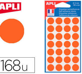 PASTILLE ADHASIVE APLI AGIPA D IAMETRE 15MM PERMANENTE COLORIS ORANGE POCHETTE 168 UNITAS