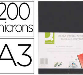 PLAT COUVERTURE Q-CONNECT PVC 200 MICRONS A3 RELIEURS SPIRALES PEIGNES ANNEAUX COLORIS NOIR BOÎTE 100 UNITÉS