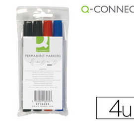MARQUEUR Q-CONNECT PERMANENT P OINTE OGIVE TRACA 3MM RASISTANTE CORPS PLASTIQUE POCHETTE 4 UNITAS