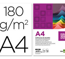 PAPIER CARTONNÉ LIDERPAPEL A4 180G/M2 4 COLORIS ASSORTIS PAQUET 100F