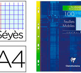 FEUILLET MOBILE CLAIREFONTAINE A4 210X297MM PAPIER VALIN VELOUTA 100 PAGES 90G SAYES PERFORA COLORIS BLEU