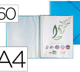 PROTÈGE-DOCUMENTS LIDERPAPEL POLYPROPYLÈNE COUVERTURE RIGIDE SPIRALE 60 POCHETTES FIXES A4 210X297MM COLORIS BLEU