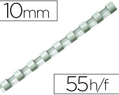 ANNEAU PLASTIQUE RELIER DOS ROND 21 ANNEAUX CAPACITÉ 55F 10MM DIAMÈTRE 300MM LONGUEUR COLORIS BLANC BOÎTE 100U