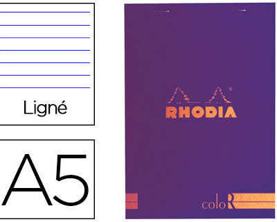 BLOC AGRAFÉ RHODIA COLOR N.16 A5 14.8x21CM COUVERTURE PELLICULÉE SAPHIR 70F 90G LIGNÉ MICROPERFORÉ SAPHIR
