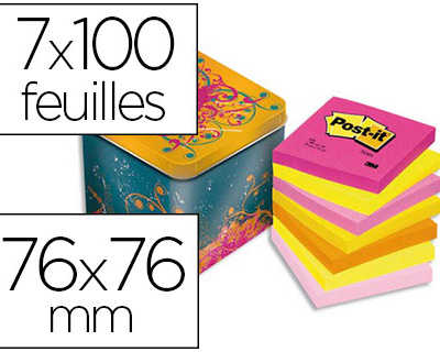 Original BLOC-NOTES 3M 76X76MM PACK AVANTAGE 7 BLOCS ASSORTIS + BOÎTE MÉTAL