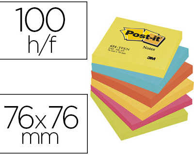 POST-IT NOTES 76X76MM 100F LOT 6 BLOCS 5 COLORIS ENERGIQUES ASSORTIS