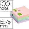 BLOC-NOTES Q-CONNECT CUBE QUICK NOTES 76X76MM 400F REPOSITIONNABLES SANS TRACES COLORIS PASTEL