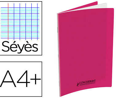 Original CAHIER AGRAFÉ CONQUÉRANT POLYPROPYLÈNE A4+ 24X32CM 48 PAGES SÉYÈS 90G COLORIS ROSE