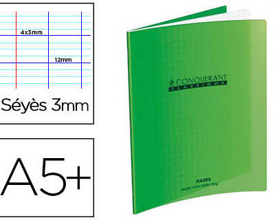 CAHIER D'ACRITURE CONQUARANT C LASSIQUE COUVERTURE POLYPROPYLENE RIGIDE A5+ 17X22CM 32 PAGES 90G SAYES 3MM COLORIS VERT