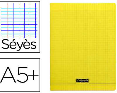 CAHIER PIQUÉ CLAIREFONTAINE COUVERTURE POLYPROPYLÈNE TRANSPARENTE A5+ 17X22CM 96 PAGES 90G SÉYÈS COLORIS JAUNE
