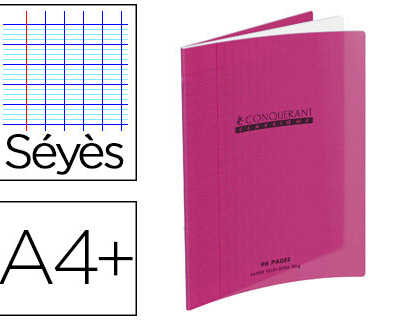 CAHIER PIQUA CONQUARANT CLASSI QUE COUVERTURE POLYPROPYLENE RIGIDE TRANSPARENTE A4+ 24X32CM 96 PAGES 90G SAYES ROSE Soit : 4,29 € HT l'unité UMV : 10
