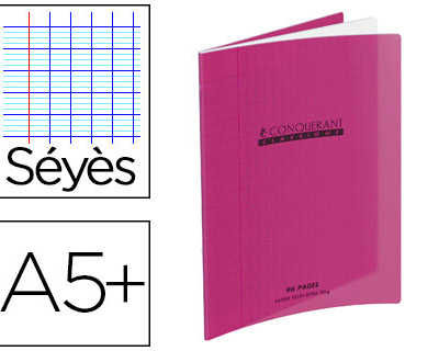 Original CAHIER PIQUA CONQUARANT CLASSI QUE COUVERTURE POLYPROPYLENE RIGIDE TRANSPARENTE A5+ 17X22CM 48 PAGES 90G SAYES VIOLET