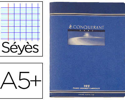 CAHIER PIQUÉ CONQUÉRANT SEPT COUVERTURE OFFSET A5+ 17X22CM 192 PAGES 70G SÉYÈS