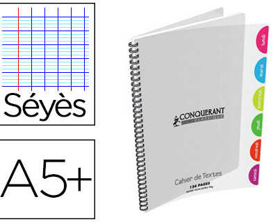 CAHIER SPIRALE CONQUÉRANT CLASSIQUE COUVERTURE POLYPROPYLÈNE A5+ 17X22CM 124 PAGES SÉYÈS INCOLORE Soit : 3,6 € HT l'unité UMV : 10