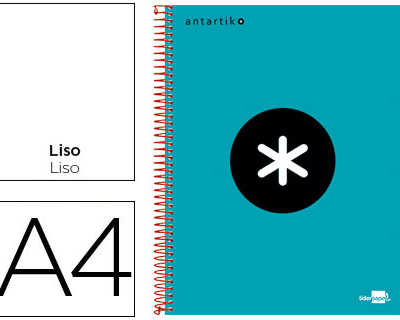 CAHIER SPIRALE LIDERPAPEL ANTA SERIE ANTARTIK A4 UNI REEMBORDÉE 120F 100G MICRO-PERFORÉES BANDES 4 TROUS TURQUOISE Soit : 7,22 € HT l'unité UMV : 3