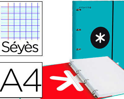 Original CLASSEUR LIDERPAPEL ANTARTIK 4 ANNEAUX 25MM A4 CARTON REMBORDA FEUILLETS MOBILES SAYES COLORIS TURQUOISE