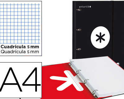 Original CLASSEUR LIDERPAPEL ANTARTIK 4 ANNEAUX RONDS 40MM A4 CARTON REMBORDA FEUILLETS MOBILES QUADRILLAGE 5MM COLORIS NOIR