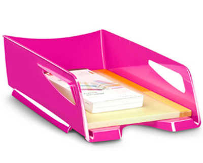 CORBEILLE ACOURRIER MAXI CEP GLOSS DOCUMENTS 24X32CM 2 POIGNAES SUPERPOSABLE DROIT DACALA 270X386X115MM COL. ROSE PEPSY Soit : 15,56 € HT l'unité UMV : 1