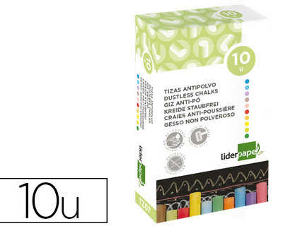 CRAIE LIDERPAPEL ENROBÉE RONDE ANTI-POUSSIÈRE TRACÉ ÉCRITURE DOUCE HYPOALLERGÉNIQUE COLORIS ASSORTIS BOÎTE 10 UNITÉS