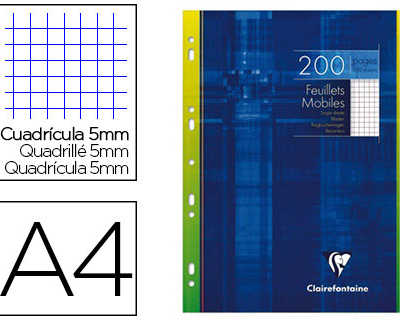 FEUILLET MOBILE CLAIREFONTAINE A4 210X297MM PAPIER VÉLIN VELOUTÉ 200F 90G 5X5MM PERFORÉ COLORIS BLANC