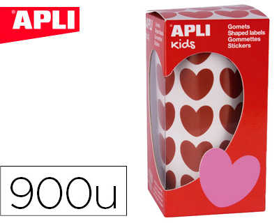 Original GOMMETTE APLI KIDS MOTIF COEUR 20X18MM COLORIS ROUGE ROULEAU 30 FEUILLES BOÎTE 900 UNITÉS