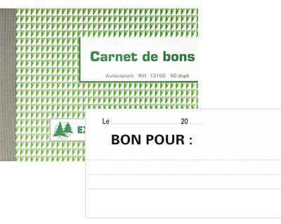 MANIFOLD AUTOCOPIANT EXACOMPTA BON POUR FORMAT POCKET HORIZONTAL 105X135MM FOLIOTAGE 50 DUPLIS Soit : 3,14 € HT l'unité UMV : 1