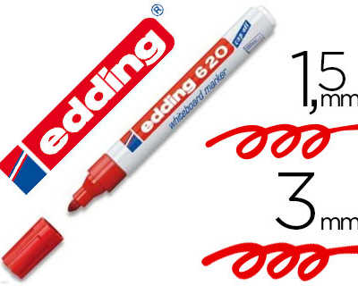 MARQUEUR EDDING E620 TABLEAU BLANC POINTE OGIVE CORPS MÉTAL ENCRE CAP-OFF EFFAÇABLE PIGMENTÉE FAIBLE ODEUR COULEUR ROUGE Soit : 2,88 € HT l'unité UMV : 10