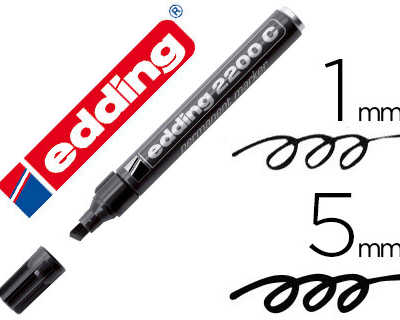 MARQUEUR EDDING PERMANENT 2200 POINTE BISEAUTÉE TRACÉ 1/5MM CORPS ALUMINIUM ENCRE RÉSISTANTE LUMIÈRE COULEUR NOIR