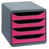 Original MODULE CLASSEMENT EXACOMPTA BI G BOX 4 TIROIRS OUVERTS MONOBLOC ULTRA RIGIDE 347X278X267MM COLORIS GRIS/FRAMBOISE