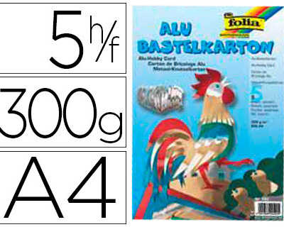 Original PAPIER CARTON FOLIA A4 300G MÉTALLISÉ EFFET MIROIR 2 FACE 5 COLORIS ASSORTIS ARGENT OR VERT BLEU ROUGE SACHET 5F