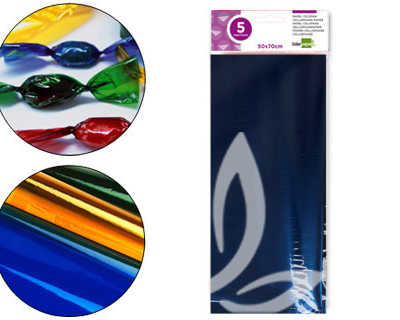 PAPIER CELLOPHANE LIDERPAPEL 50X70CM 22G/M2 UNICOLORE BLEU BRILLANT SACHET 5F Soit : 2,16 € HT l'unité UMV : 1