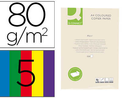 PAPIER COULEUR Q-CONNECT MULTI FONCTION A4 80G/M2 5 COLORIS ASSORTIS INTENSES RAMETTE 500 FEUILLES