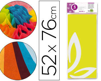 PAPIER SOIE LIDERPAPEL 52X76CM 18G/M2 UNICOLORE JAUNE SACHET 5F Soit : 0,64 € HT l'unité UMV : 1