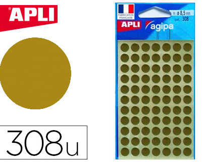 PASTILLE ADHASIVE APLI AGIPA D IAMETRE 8MM PERMANENTE COLORIS OR POCHETTE 308 UNITAS Soit : 1,34 € HT l'unité UMV : 1