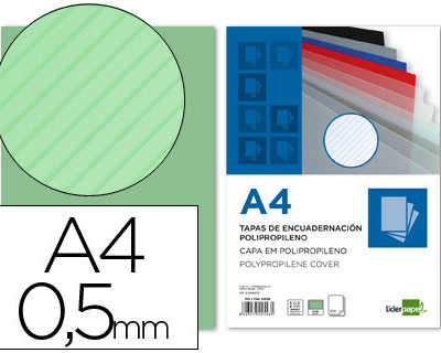 Original PLAT COUVERTURE LIDERPAPEL PPL RAYÉ LIGNES DIAGONALES 0.5MM A4 DOSSIER RELIURE COLORIS VERT BOÎTE 100 UNITÉS