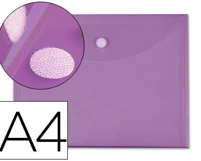 POCHETTE ENVELOPPE LIDERPAPEL POLYPROPYLENE 180 MICRONS A4 297X210MM FERMETURE VELCRO COLORIS VIOLET Soit : 0,67 € HT l'unité UMV : 12
