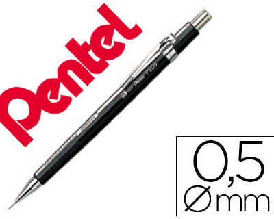 PORTE-MINES PENTEL P200 0.5MM EMBOUT AGRAFE MÉTALLIQUES CANON FIXE LONGUEUR 4 MM CORPS COLORIS NOIR