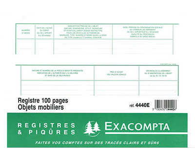 REGISTRE EXACOMPTA PIQÛRE 240X 320MM 100 PAGES REGISTRES SPÉCIAUX OBJETS MOBILIERS VENTES MAGASIN
