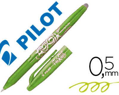 ROLLER PILOT FRIXION BALL ACRI TURE MOYENNE 0.5MM ENCRE EFFACABLE GRIP PRAHENSION RECHARGEABLE GOMME SERTIE VERT POMME Soit : 2,17 € HT l'unité UMV : 12
