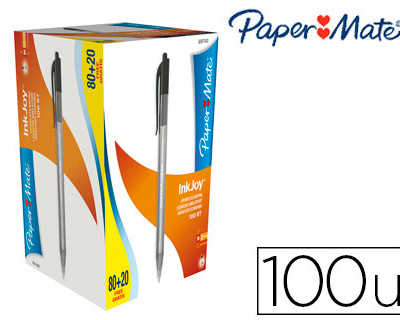 STYLO-BILLE PAPER MATE INKJOY 100 ACRITURE MOYENNE 0.5MM ENCRE ULTRA DOUCE RASISTE BAVURES RATRACTABLE NOIR PACK 100U Soit : 57,16 € HT l'unité UMV : 1