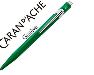 STYLO CARAN D'ACHE 849 CLASSIC LINE ALUMINIUM BOUTON POUSSOIR CORPS HEXAGONAL VERT ENCRE BLEUE POINTE MOYENNE